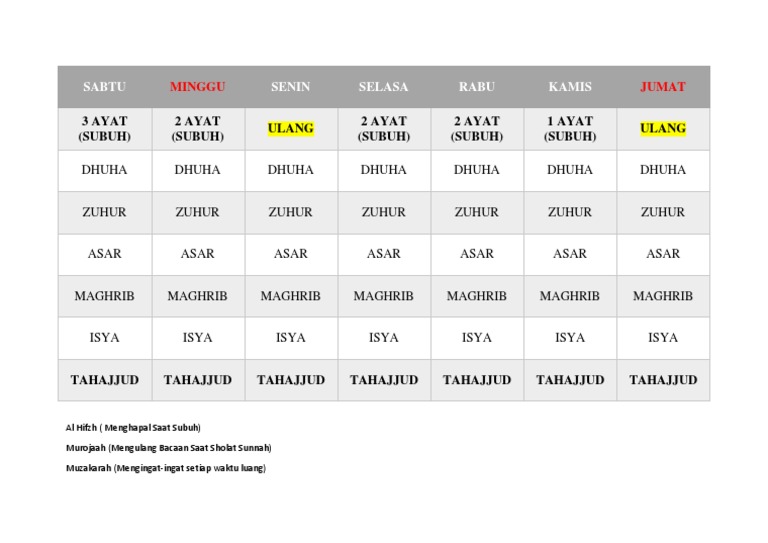 Jadwal Hapalan Al Quran Metode Ust Adi Hidayat