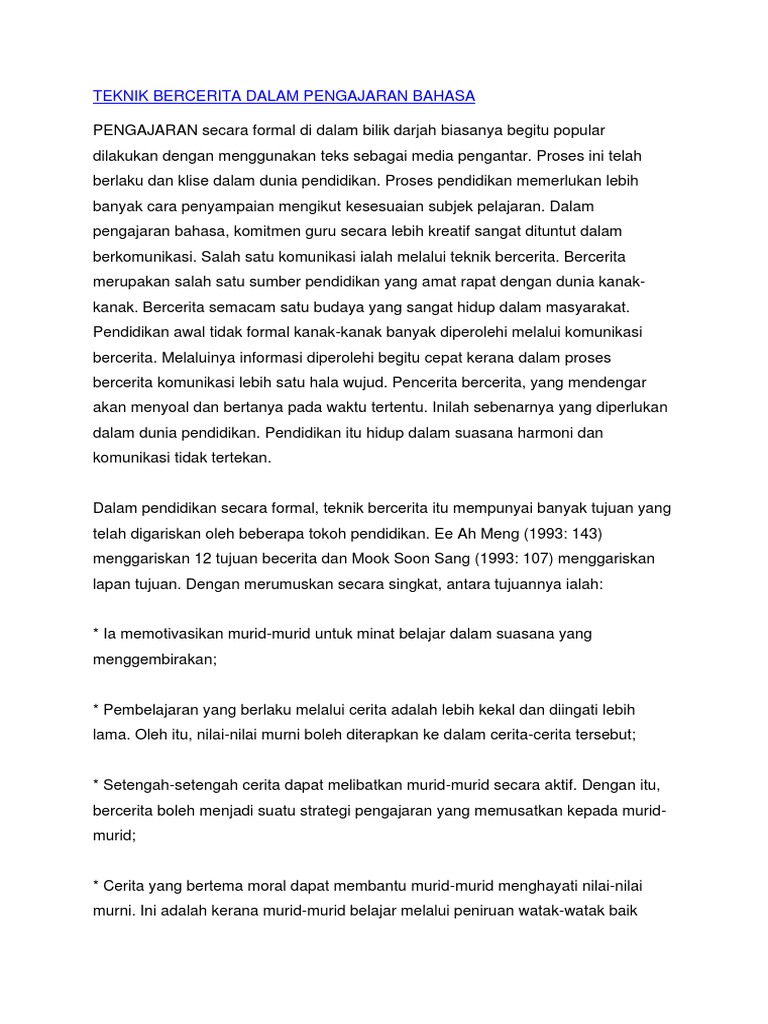 Teknik Bercerita Dalam Pengajaran Bahasa