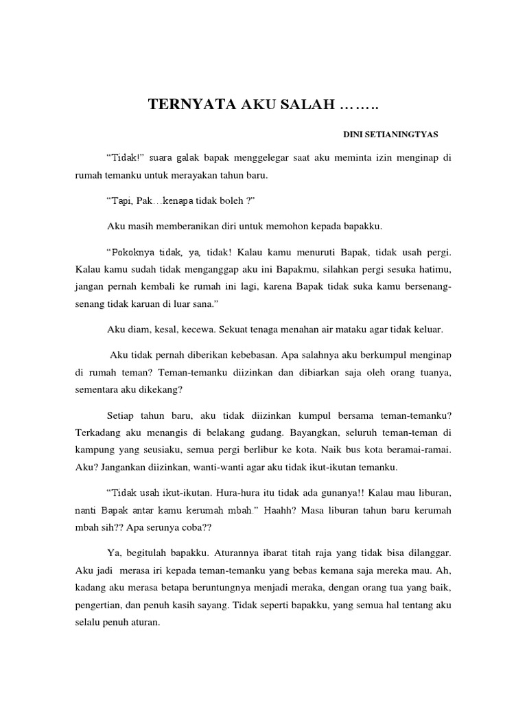 Cerpen Ternyata Aku Salah Dini Setianingtyas Xi Adm Perkantoran 1 Smkn 1 Sungailiat