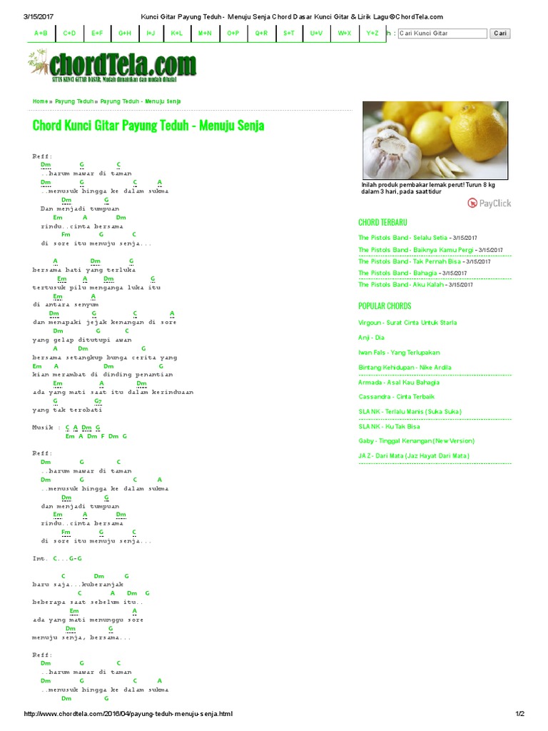 Kunci Gitar Payung Teduh Menuju Senja Chord Dasar Kunci Gitar Lirik Lagu C Chordtela
