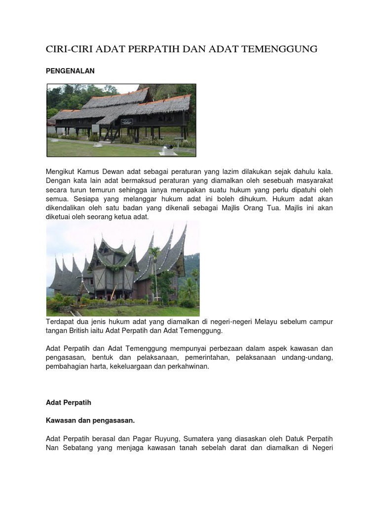 Sejarah Stpm Ciri Ciri Adat Perpatih Dan Adat Temenggung