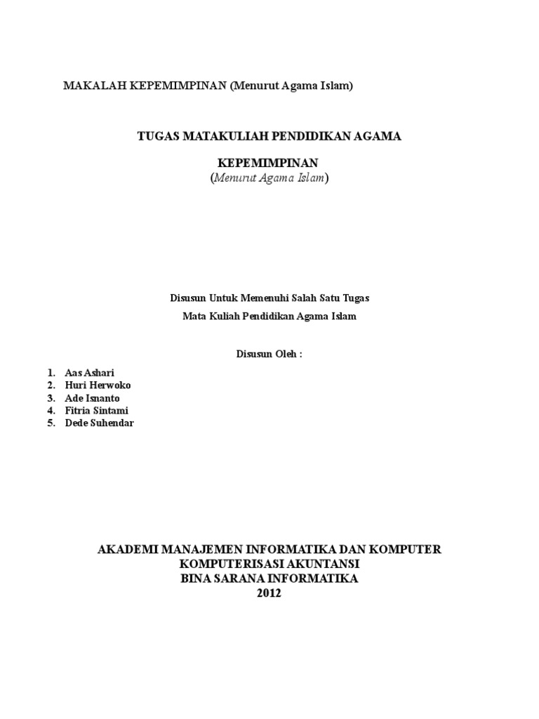 Tugas Matakuliah Pendidikan Agama Kepemimpinan