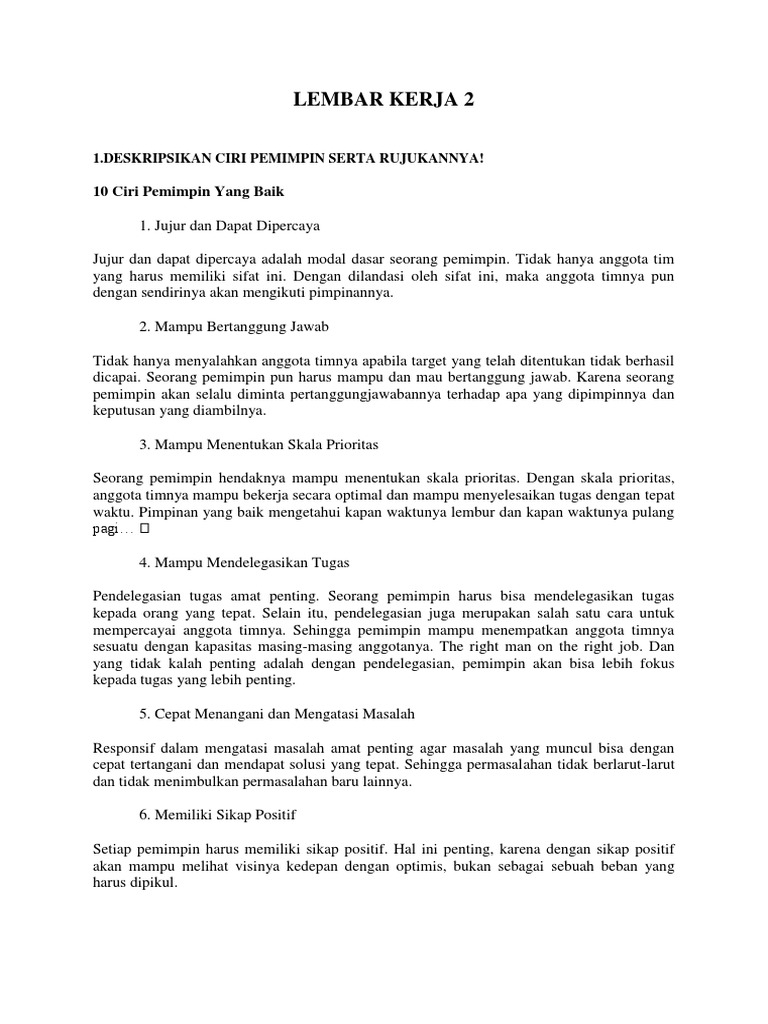 Ciri Ciri Pemimpin Yang Baik Sikap Sikapnya