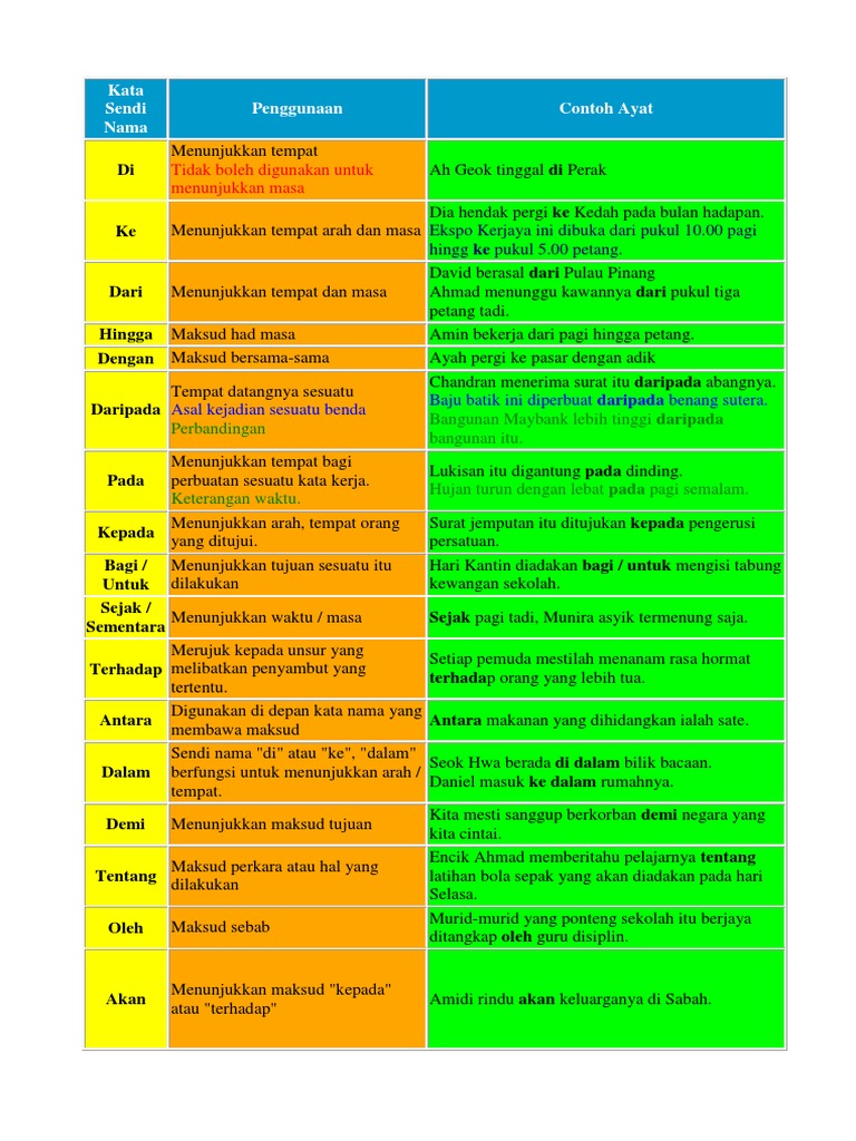 Bahasa Melayu Study Notes Kata Sendi Nama