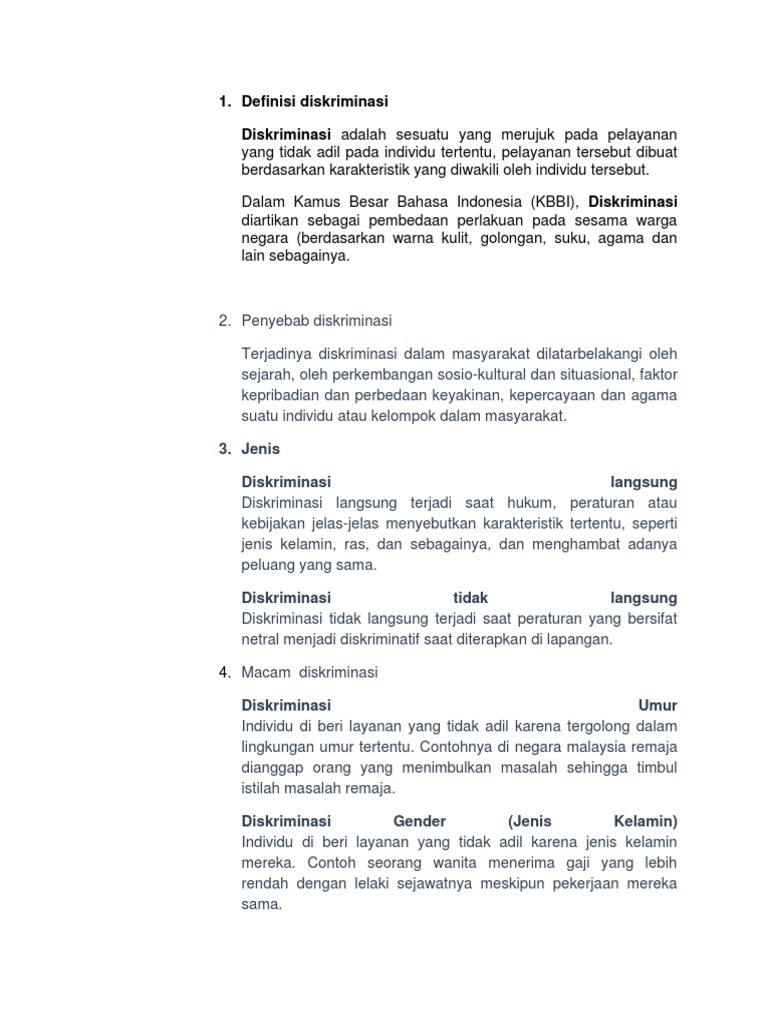 Diskriminasi Pengertian Bentuk Penyebab Jenis Lengkap