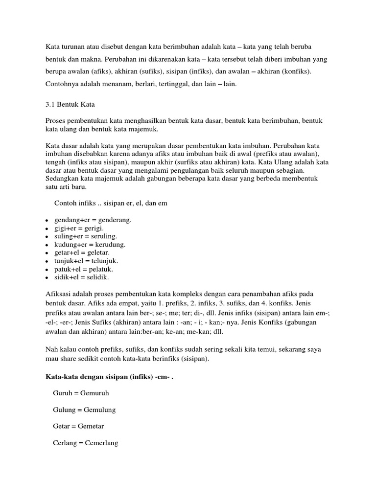 Contoh Kata Dasar Dan Imbuhannya
