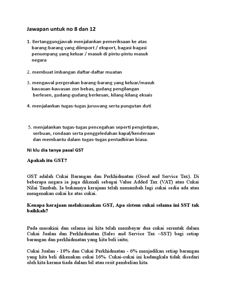 Jawapan Ini Berkaitan Jabatan Kastam Diraja Malaysia Sahaja Gst 106 Jawapan Kastam Pdf Untuk Tempoh Pdf Document