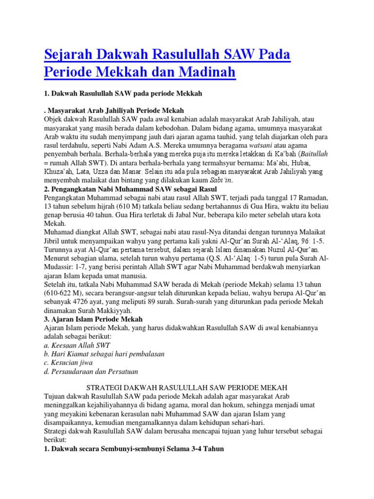 Sejarah Dakwah Rasulullah Saw Pada Periode Mekkah Dan Madinah