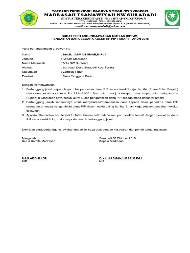 Sptjm Pip 1 2018 Surat Kolektif