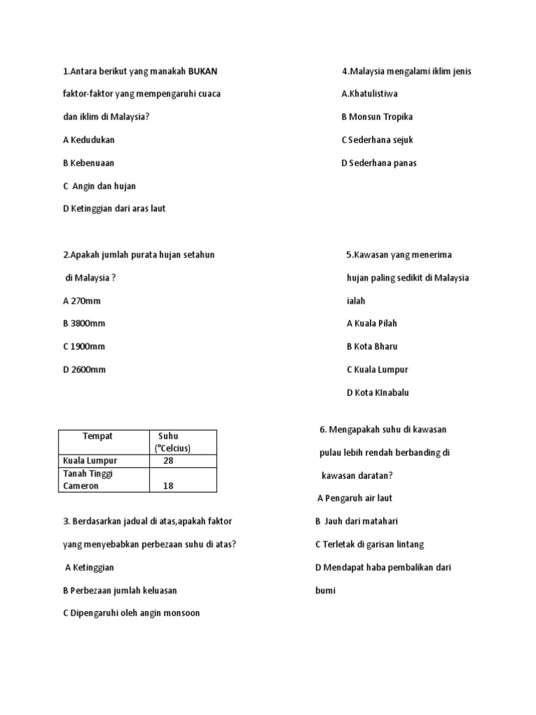 4 Malaysia Mengalami Iklim Jenis