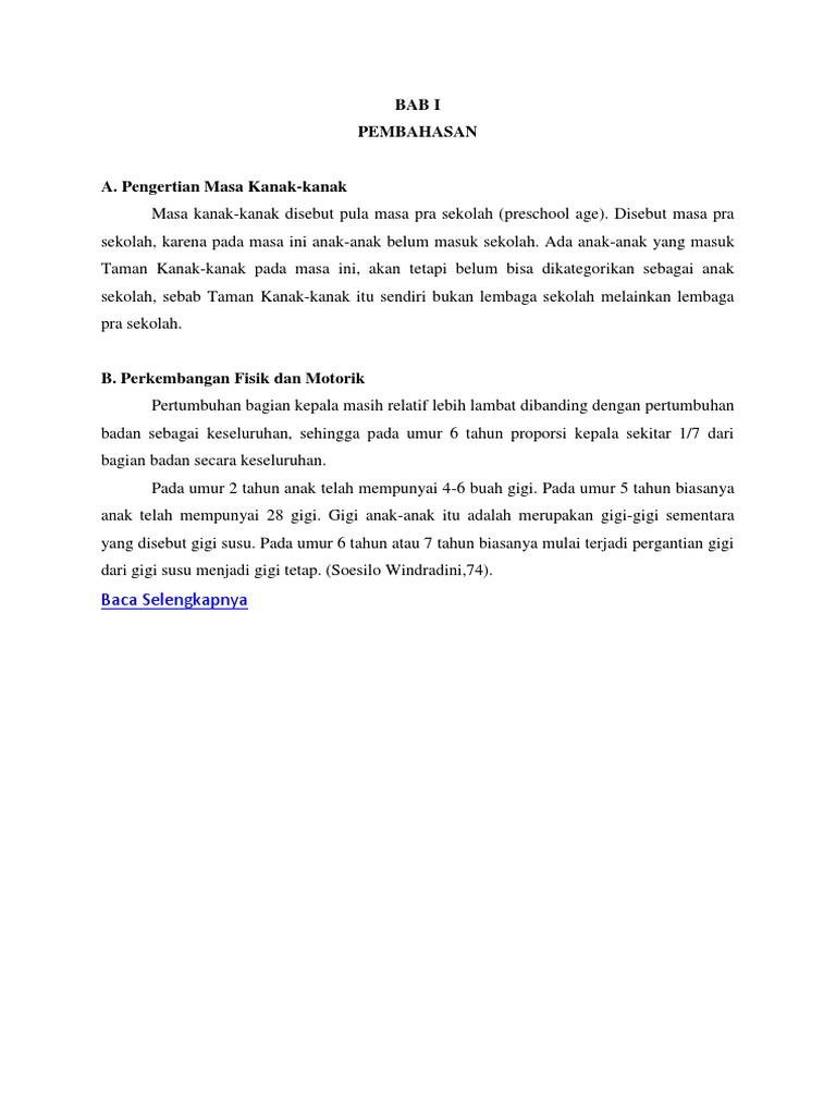 Masa Balita Masa Kanak Kanak Masa Remaja