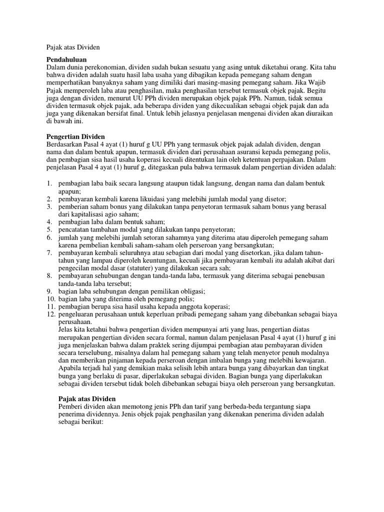 Saat Pemotongan Dividen