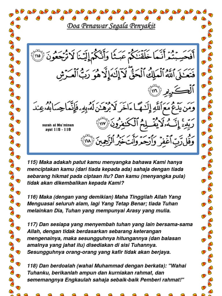 Doa penawar segala penyakit. Mengaktifkan sel sel otak sistem saraf dan endokrin. Perlu diperhatikan bahwa mustajabnya segala sesuatu adalah karena keyakinan dalam diri setiap orang. Selain obat dari dokter allah menjadikan al qur an juga dapat menjadi segala penawar orang yang beriman. Dan apabila aku sakit dialah yang menyembuhkan aku 81.