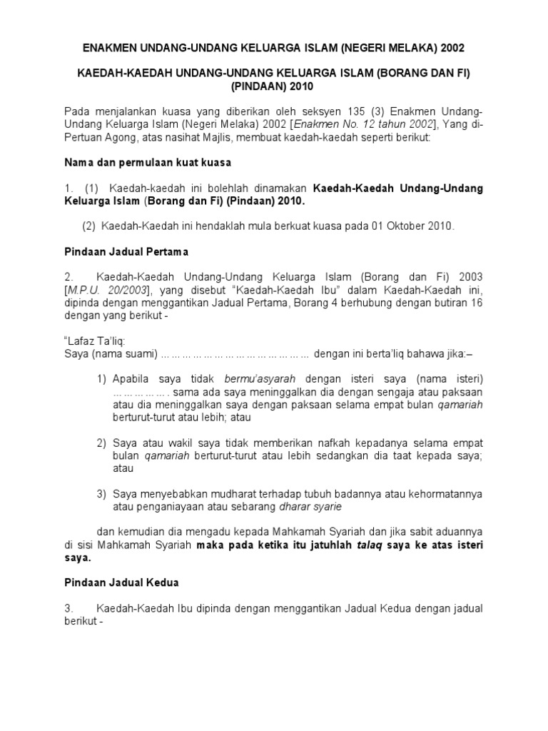 Enakmen Undang Undang Keluarga Islam Negeri Melaka 2002 Dan Kaedah Kaedah Malacca Malaysia State Google Books