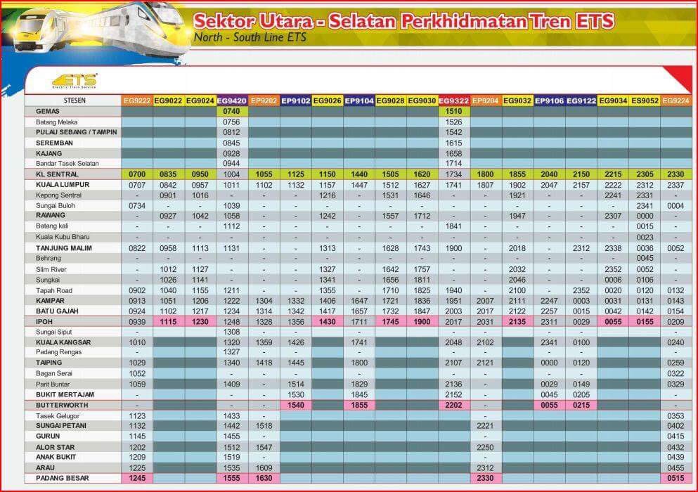 Jadual Ets Electric Train Set Timetable Jadual Perjalanan Ets Ets Train Schedule Page 2