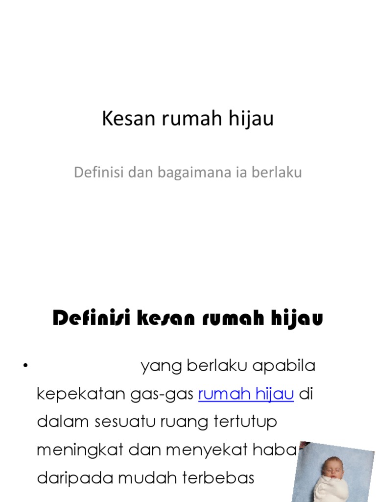 Faktor faktor yang menyebabkan kesan rumah hijau merupakan satu lapisan gas beracun yang terdiri daripada karon dioksida karbon monoksida sulfur dioksida dan hidrokarbon yang menghalang pembalikan haba ke atmosfera suhu meningkat. Kesan rumah hijau adalah fenomena pemanasan bumi akibat banyak haba terperangkap dalam lapisan atmosfera dan menghalang pembalikan semula bahang dari bumi ke atmosfera. Haba dipantulkan semula ke bumi atmosfera menyimpan lebih banyak haba dan bumi menjadi semakin panas. 1 menyebab berlakunya pemanasan global huraian ia berlaku kerana adanya prosespemerangkapan bahang matahariyang dipantulkan semula olehpermukaan bumi.