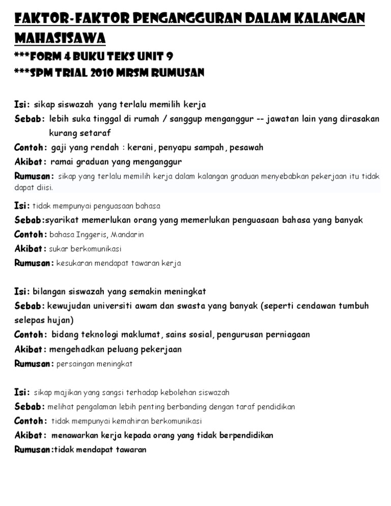 Sebab Pengangguran Di Malaysia