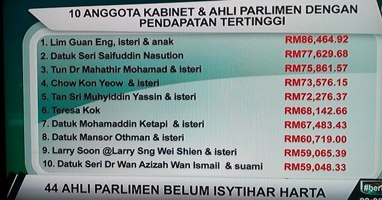 Pendapatan bulanan timbalan menteri. Kajian yang dilakukan portal listabuzz april lalu najib dikatakan memperoleh pendapatan secara sebanyak 75 775 2 usd rm284 194 89 setahun. Baru baru ini portal suruhanjaya pencegahan rasuah malaysia mendedahkan pendapatan yang diperoleh oleh ahli pentadbiran kerajaan dimana perdana menteri mengungguli carta sebagai ahli pentadbiran dengan pendapatan tertinggi iaitu pada rm94 000. Bagi setiap menteri boleh rujuk jadual di bawah ini.