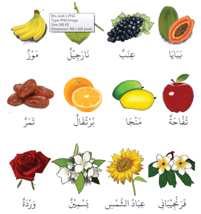 Kad Bergambar Bahasa Arab Mari Kenal Buah Buahan Kitpramenulis